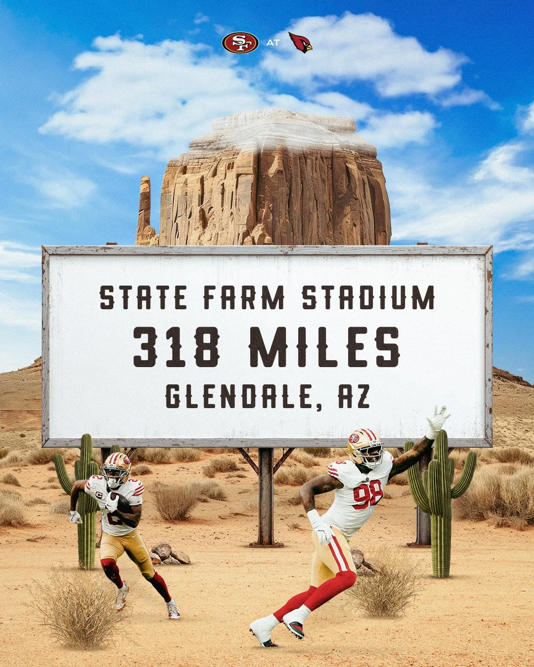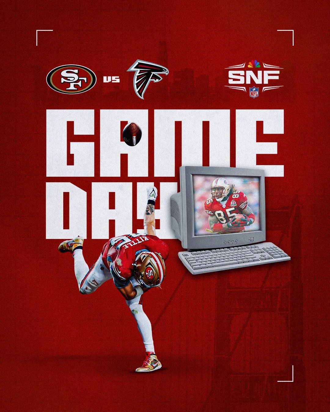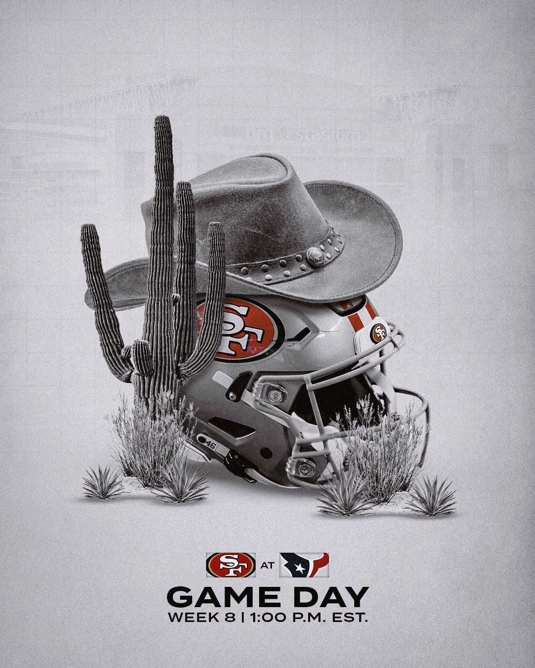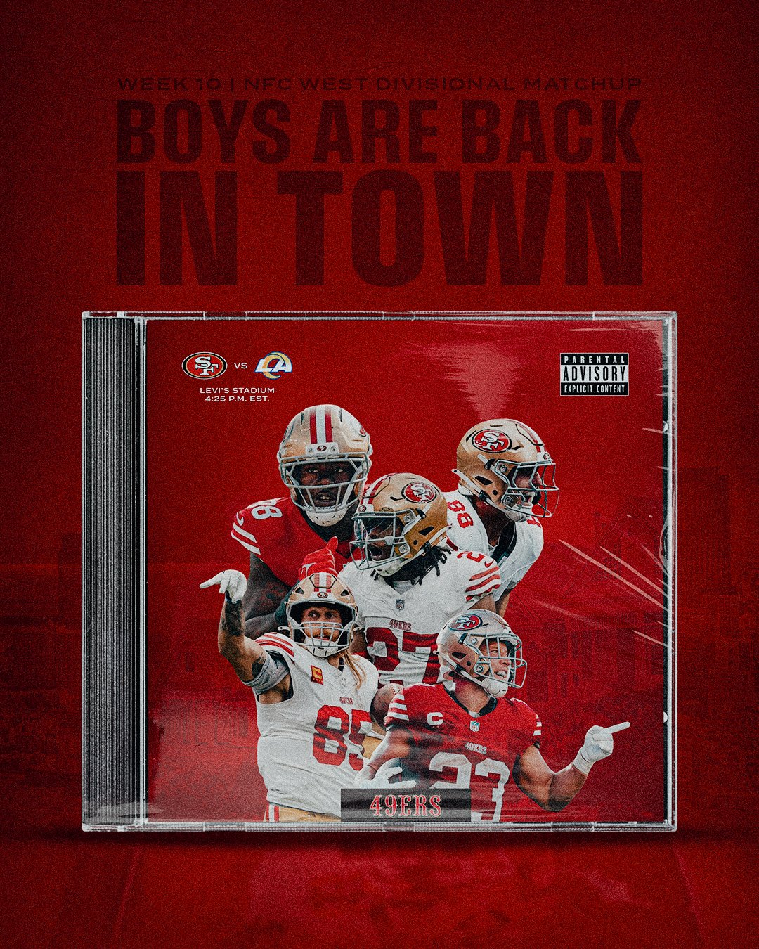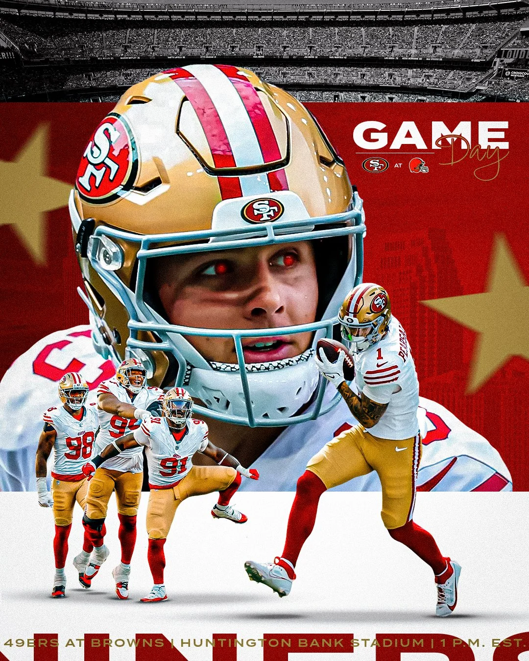Weekly game day graphics for San Francisco 49ers during 2025 season.